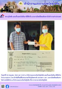 สรจ.สุโขทัย มอบตั๋วแลกเงินคืนภาษีไต้หวัน แรงงานไทยที่เคยเดินทางไปทำงานต่างประเทศ