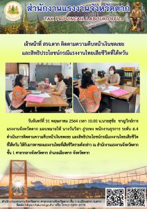 สรจ.สุโขทัย รายงานผลการดำเนินงานศูนย์บริการร่วมกระทรวงแรงงานจังหวัดสุโขทัย ประจำเดือนพฤษภาคม 2564