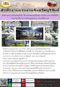 สำนักงานแรงงานจังหวัดบุรีรัมย์ ได้ร่วมรับที่เสียชีวิตจากการโจมตีทางอากาศโดยกลุ่มฮามาส ประเทศอิสราเอล