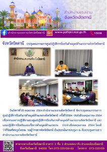 สำนักงานแรงงานจังหวัดนราธิวาส ร่วมประชุมติดตามการดำเนินการตามมติ กพต. และเตรียมความพร้อมเรื่องที่เสนอ กพต. ครั้งที่ 2/2564