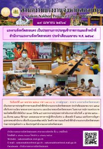 แรงงานจังหวัดสกลนคร เป็นประธานการประชุมข้าราชการและเจ้าหน้าที่สำนักงานแรงงานจังหวัดสกลนคร ประจำเดือนเมษายน พ.ศ. ๒๕๖๔