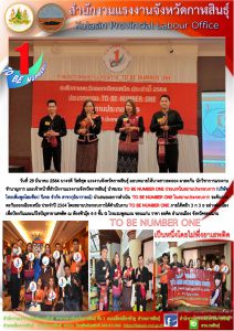 สำนักงานแรงงานจังหวัดกาฬสินธุ์ นำชมรม TO BE NUMBER ONE ประเภทในสถานประกอบการต้นแบบ ร่วมประกวด TO BE NUMBER ONE ระดับภาคตะวันออกเฉียงเหนือ