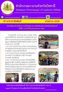 จังหวัดปัตตานี เปิดโครงการ เสริมสร้างความเข้มแข็งและสุขภาวะในการทำงานแก่แรงงานนอกระบบ (รวมแรงงานคนพิการและแรงงานผู้สูงอายุ) จังหวัดปัตตานี ประจำปี พ.ศ. 2564