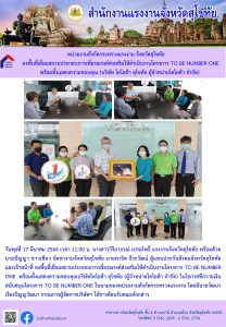 หน่วยงานสังกัดกระทรวงแรงงาน จังหวัดสุโขทัย ลงพื้นที่เยี่ยมสถานประกอบการเพื่อรณรงค์ส่งเสริมให้ดำเนินงานโครงการ TO BE NUMBER ONE พร้อมทั้งแสดงความขอบคุณ (บริษัท โตโยต้า สุโขทัย ผู้จำหน่ายโตโยต้า จำกัด)
