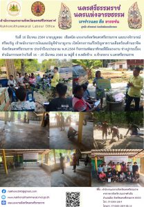 แรงงานจังหวัดนครศรีธรรมราช เปิดโครงการแก้ไขปัญหาความเดือดร้อนด้านอาชีพ จังหวัดนครศรีธรรมราช ต.หลักช้าง อ.ช้างกลาง