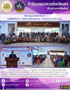 สำนักงานแรงงานจังหวัดแพร่ ร่วมพิธีเปิดกิจกรรม “ศูนย์ปรับเปลี่ยนพฤติกรรม” จังหวัดแพร่ ประจำปี 2564