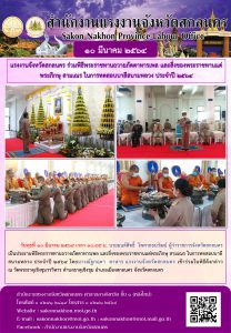 แรงงานจังหวัดสกลนคร ร่วมพิธีพระราชทานถวายภัตตาหารเพล และสิ่งของพระราชทานแด่พระภิกษุ สามเณร ในการทดสอบบาลีสนามหลวง ประจำปี ๒๕๖๔
