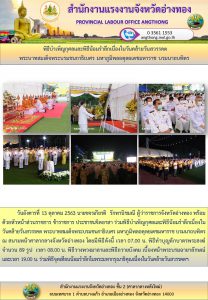 สำนักงานแรงงานจังหวัดอ่างทอง ร่วมพิธีบำเพ็ญกุศลและพิธีน้อมรำลึกเนื่องในวันคล้ายวันสวรรคตฯ