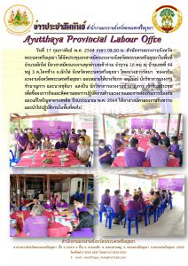 สำนักงานแรงงานจังหวัดพระนครศรีอยุธยาลงพื้นที่จัดประชุมอสร.ในพื้นที่อำเภอผักไห่