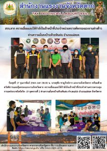 แรงงานจังหวัดสุพรรณบุรี ลงพื้นที่เพื่อตรวจเยี่ยมการดำเนินโครงการแก้ไขปัญหาความเดือดร้อนด้านอาชีพจังหวัดสุพรรณบุรี ปีงบประมาณ พ.ศ.2564