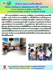 แรงงานจังหวัดสงขลา เป็นประธานในพิธีเปิดโครงการแก้ไขปัญหาความเดือดร้อนด้านอาชีพจังหวัดสงขลา ประจำปีงบประมาณ พ.ศ. 2564