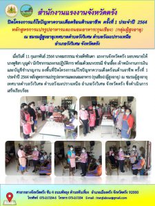 สำนักงานแรงงานจังหวัดตรัง ปิดโครงการแก้ไขปัญหาความเดือดร้อนด้านอาชีพ ครั้งที่ 1 ประจำปี 2564 หลักสูตรการแปรรูปอาหารและถนอมอาหาร(กุนเชียง) (กลุ่มผู้สูงอายุ)ณ ชมรมผู้สูงอายุเทศบาลตำบลวังวิเศษ ตำบลวังมะปรางเหนือ อำเภอวังวิเศษ จังหวัดตรัง