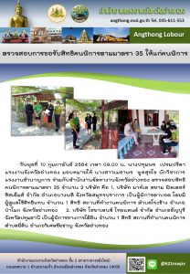 ตรวจสอบการขอรับสิทธิคนพิการตามมาตรา 35 ให้แก่คนพิการ จังหวัดอ่างทอง