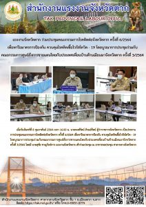 แรงงานจังหวัดตาก ร่วมประชุมคณะกรรมการโรคติดต่อจังหวัดตาก ครั้งที่ 6/2564 เพื่อหารือมาตรการป้องกัน ควบคุมโรคติดเชื้อไวรัสโควิด – 19 โดยบูรณาการประชุมร่วมกับคณะกรรมการศูนย์สั่งการชายแดนไทยกับประเทศเพื่อนบ้านด้านเมียนมาจังหวัดตาก ครั้งที่ 3/2564