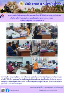 แรงงานจังหวัดสุโขทัย มอบหมายข้าราชการและเจ้าหน้าที่ ให้คำปรึกษาแนะนำและรับคำร้องเพื่อติดตามสิทธิประโยชน์แก่คนงานไทยที่เคยเดินทางไปทำงานต่างประเทศ รวมทั้งรณรงค์สุโขทัย รวมใจสู้ภัยโควิด-19