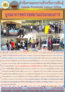 ส่วนราชการสังกัดกระทรวงแรงงานจังหวัดกาฬสินธุ์ พร้อมด้วย สำนักงานตรวจคนเข้าเมืองจังหวัดกาฬสินธุ์ สถานีวิทยุโทรทัศน์แห่งประเทศไทย NBT ร่วมบูรณาการตรวจเยี่ยมสถานประกอบการ โครงการป้องกันการบังคับใช้แรงงานหรือบริการ และการค้ามนุษย์ด้านแรงงานจังหวัดกาฬสินธุ์