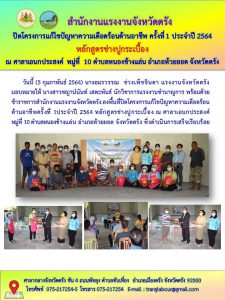 สำนักงานแรงงานจังหวัดตรัง ปิดโครงการแก้ไขปัญหาความเดือดร้อนด้านอาชีพ ครั้งที่ 1 ประจำปี 2564 หลักสูตรช่างปูกระเบื้อง ณ ศาลาเอนกประสงค์ หมู่ที่ 10 ตำบลหนองช้างแล่น อำเภอห้วยยอด จังหวัดตรัง