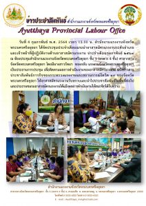 สำนักงานแรงงานจังหวัดพระนครศรีอยุธยา จัดประชุมประจำเดือนแกนนำอาสาสมัครแรงงานระดับอำเภอและเจ้าหน้าที่ผู้ปฏิบัติงานด้านอาสาสมัครแรงงาน ประจำเดือนกุมภาพันธ์ 2564