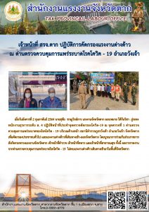 สำนักงานแรงงานจังหวัดกระบี่ ตรวจสอบสถานประกอบกิจการแบบบูรณาการ เพื่อป้องกันและแก้ไขปัญหาการค้ามนุษย์ด้านแรงงานจังหวัดกระบี่