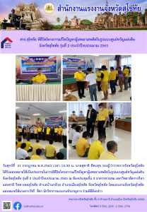 สำนักงานแรงงานจังหวัดบุรีรัมย์ จัดกิจกรรมให้ความรู้ ปรึกษาแนะนำ แลกเปลี่ยนเรียนรู้และประชาสัมพันธ์การป้องกันและแก้ไขปัญหายาเสพติดในสถานประกอบการที่มีลูกจ้างต่ำกว่า 10 คนลงมา ณ อำเภอพลับพลาชัยจังหวัดบุรีรัมย์