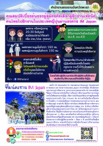 สำนักงานแรงงานจังวัดพะเยา แจ้งบุคคลที่มีคุณสมบัติเบื้องต้นของผู้สมัครคัดเลือกผู้ฝึกงานเทคนิคคนไทยไปฝึกงานในประเทศญี่ปุ่นผ่านองค์กร IM Japan