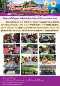 สำนักงานแรงงานจังหวัดระนอง ได้ดำเนินการฝึกอาชีพ กิจกรรมพัฒนาทักษะฝีมือแรงงาน ตามโครงการแก้ไขปัญหาความเดือดร้อนด้านอาชีพ ประจำปีงบประมาณ พ.ศ. 2563