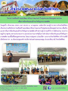 แรงงานจังหวัดพิจิตร ร่วมโครงการเสริมสร้างและพัฒนาศักยภาพแกนนำในชุมชนรอบนิคมอุตสาหกรรม เพื่อการป้องกันและเฝ้าระวังปัญหายาเสพติด