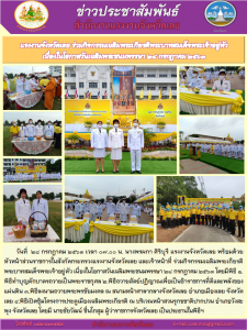 แรงงานจังหวัดชุมพร ร่วมพิธีทำบุญตักบาตร ถวายเป็นพระราชกุศลพระบาทสมเด็จพระเจ้าอยู่หัว เนื่องในโอกาสวันเฉลิมพระชนมพรรษา