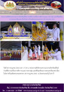 ข้าราชการ/เจ้าหน้าที่ สำนักงานแรงงานจังหวัดบุรีรัมย์ ร่วมพิธีทำบุญตักบาตรถวายเป็นพระราชกุศล เนื่องในโอกาสวันเฉลิมพระชนมพรรษา 28 กรกฎาคม 2563
