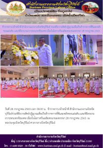 หน่วยงานสังกัดกระทรวงแรงงานจังหวัดบุรีรัมย์ ร่วมพิธีถวายเครื่องราชสักการะและวางพานพุ่ม และพิธีจุดเทียนถวายพระพรชัยมงคล เนื่องในโอกาสวันเฉลิมพระชนมพรรษา 28 กรกฎาคม 2563