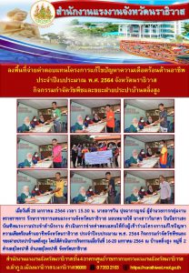 สำนักงานแรงงานจังหวัดนราธิวาส ลงพื้นที่จ่ายค่าตอบแทนโครงการแก้ไขปัญหาความเดือดร้อนด้านอาชีพ ประจำปีงบประมาณ พ.ศ. 2564 จังหวัดนราธิวาส กิจกรรมถางป่าและปรับปรุงเส้นทางธรรมชาติขึ้นฝายกั้นน้ำ