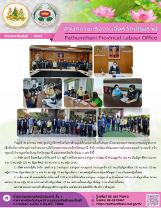 ศูนย์ปฏิบัติการป้องกันการค้ามนุษย์ด้านแรงงานจังหวัดปทุมธานี ออกตรวจสถาประกอบการแบบบูรณาการ เพื่อป้องกันการค้ามนุษย์