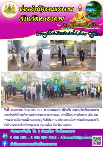 แรงงานจังหวัดหนองคาย ร่วมกิจกรรมทำความสะอาดกวาดถนน ภายใต้โครงการบ้านสวย เมืองงาม “หนองคายเมืองท่องเที่ยวและน่าอยู่ ริมฝั่งโขง”