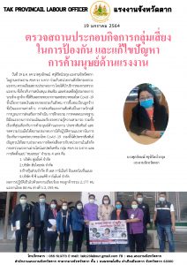 ตรวจสถานประกอบกิจการกลุ่มเสี่ยงในการป้องกัน และแก้ไขปัญหาการค้ามนุษย์ด้านแรงงาน