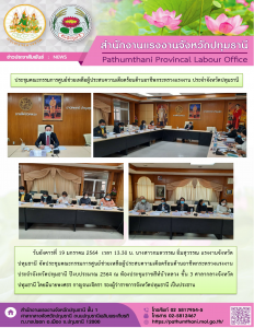 ประชุมคณะกรรมการศูนย์ช่วยเหลือผู้ประสบความเดือดร้อนด้านอาชีพกระทรวงแรงงาน ประจำจังหวัดปทุมธานี