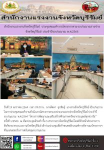 สำนักงานแรงงานจังหวัดบุรีรัมย์ ประชุมคณะทำงานโครงการตามงบประมาณรายจ่ายจังหวัดบุรีรัมย์ ประจำปีงบประมาณ พ.ศ.2564