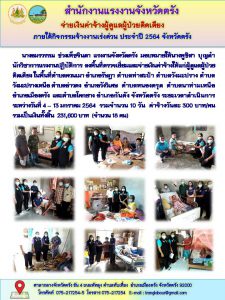 จังหวัดตรังจ่ายเงินค่าจ้างผู้ดูแลผู้ป่วยติดเตียงภายใต้กิจกรรมจ้างงานเร่งด่วน ปี 2564