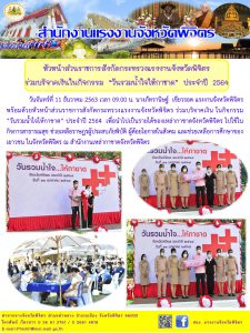 หัวหน้าส่วนราชการสังกัดกระทรวงแรงงานจังหวัดพิจิตร ร่วมบริจาคเงินในกิจกรรม “วันรวมน้ำใจให้กาชาด” ประจำปี 2564