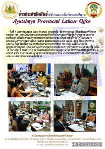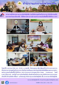 แรงงานจังหวัดพระนครศรีอยุธยา ร่วมประชุมหัวหน้าส่วนราชการจังหวัดภาคกลาง และภาคตะวันออก เพื่อติดตามสถานการณ์การแพร่ระบาดของโรคติดเชื้อไวรัสโคโรนา 2019 ผ่านระบบ Video confernce