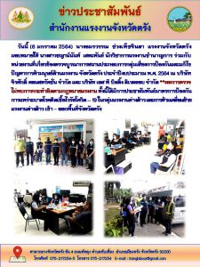 ตรวจบูรณาการสถานประกอบการกลุ่มเสี่ยงการป้องกันและแก้ไขปัญหาการค้ามนุษย์ด้านแรงงาน จังหวัดตรัง ประจำปีงบประมาณ พ.ศ. 2564 ประจำเดือนมกราคม 2564