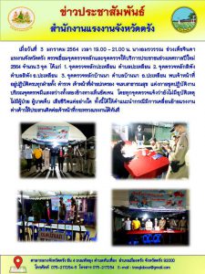 แรงงานจังหวัดตรังตรวจเยี่ยมจุดตรวจหลักและจุดตรวจให้บริการประชาชนช่วงเทศกาลปีใหม่ 2564