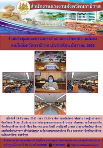 แรงงานจังหวัดนราธิวาส ร่วมประชุมคณะกรรมการอำนวยการรักษาความมั่นคงภายในจังหวัดนราธิวาส ประจำเดือน ธันวาคม 2563