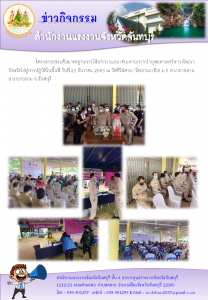 สำนักงานแรงงานจังหวัดจันทบุรี โครงการยกระดับมาตรฐานการให้บริการและประสานการนำยุทธศาสตร์การพัฒนาจังหวัดไปสู่การปฏิบัติในพื้นที่ วันที่ 23 ธันวาคม 2563 ณ วัดคีรีพิศาล (วัดเขามะปริง) ม.5 ต.นายายอาม อ.นายายอาม จ.จันทบุรี