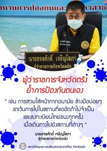 ผู้ว่าราชการจังหวัดตรังเน้นย้ำการป้องกันตัวเองจากโรคติดเชื้อไวรัสโควิด 2019