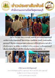 แรงงานจังหวัดสุพรรณบุรี และจัดหางานจังหวัดสุพรรณบุรี ร่วมบรูณาการออกตรวจสถานประกอบการที่มีการจ้างแรงงานต่างด้าว เพื่อประชาสัมพันธ์วิธีการป้องกันการแพร่ระบาดโควิด-๑๙