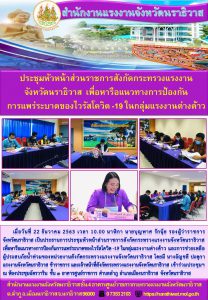 สำนักงานแรงงานจังหวัดนราธิวาส ประชุมหัวหน้าส่วนราชการสังกัดกระทรวงแรงงานจังหวัดนราธิวาส เพื่อหารือแนวทางการป้องกันการแพร่ระบาดของไวรัสโควิด -19 ในกลุ่มแรงงานต่างด้าว