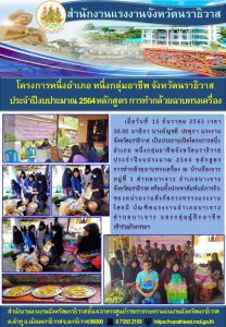 สำนักงานแรงงานจังหวัดนราธิวาส เป็นประธานเปิดโครงการหนึ่งอำเภอ หนึ่งกลุ่มอาชีพ จังหวัดนราธิวาส ประจำปีงบประมาณ 2564 หลักสูตร การทำกล้วยฉาบทรงเครื่อง