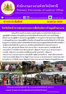 จังหวัดปัตตานี ตรวจสถานประกอบการเพื่อป้องกันการค้ามนุษย์ด้านแรงงาน