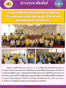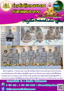 แรงงานจังหวัดสุพรรณบุรี ร่วมพิธีเจริญพุทธมนต์ เพื่อความเป็นสิริมงคลให้กับแผ่นดินและปวงชนชาวไทยทุกหมู่เหล่า ในโอกาสวันชาติ และวันพ่อแห่งชาติ 5 ธันวาคม 2563