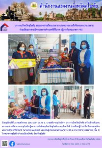 แรงงานจังหวัดสุโขทัย ชมรมอาสาสมัครแรงงาน และหน่วยงานสังกัดกระทรวงแรงงาน ร่วมเยี่ยมอาสาสมัครแรงงานตำบลศรีคีรีมาศ (ผู้ประกันตนมาตรา 40)
